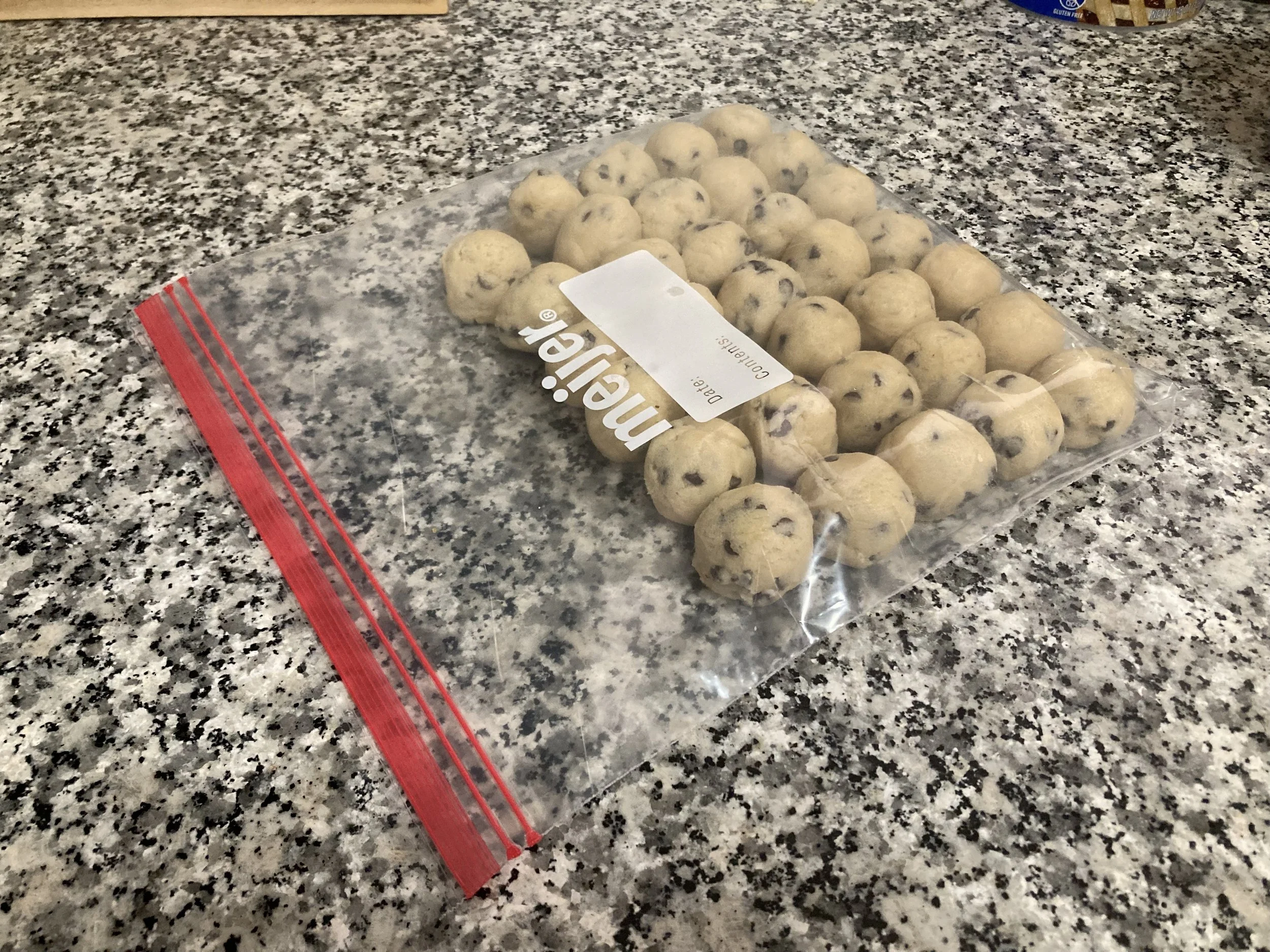 Any cookie dough balls you decided not to bake place in a freezer bag in a single layer and freeze. These can be baked from frozen without thawing :)