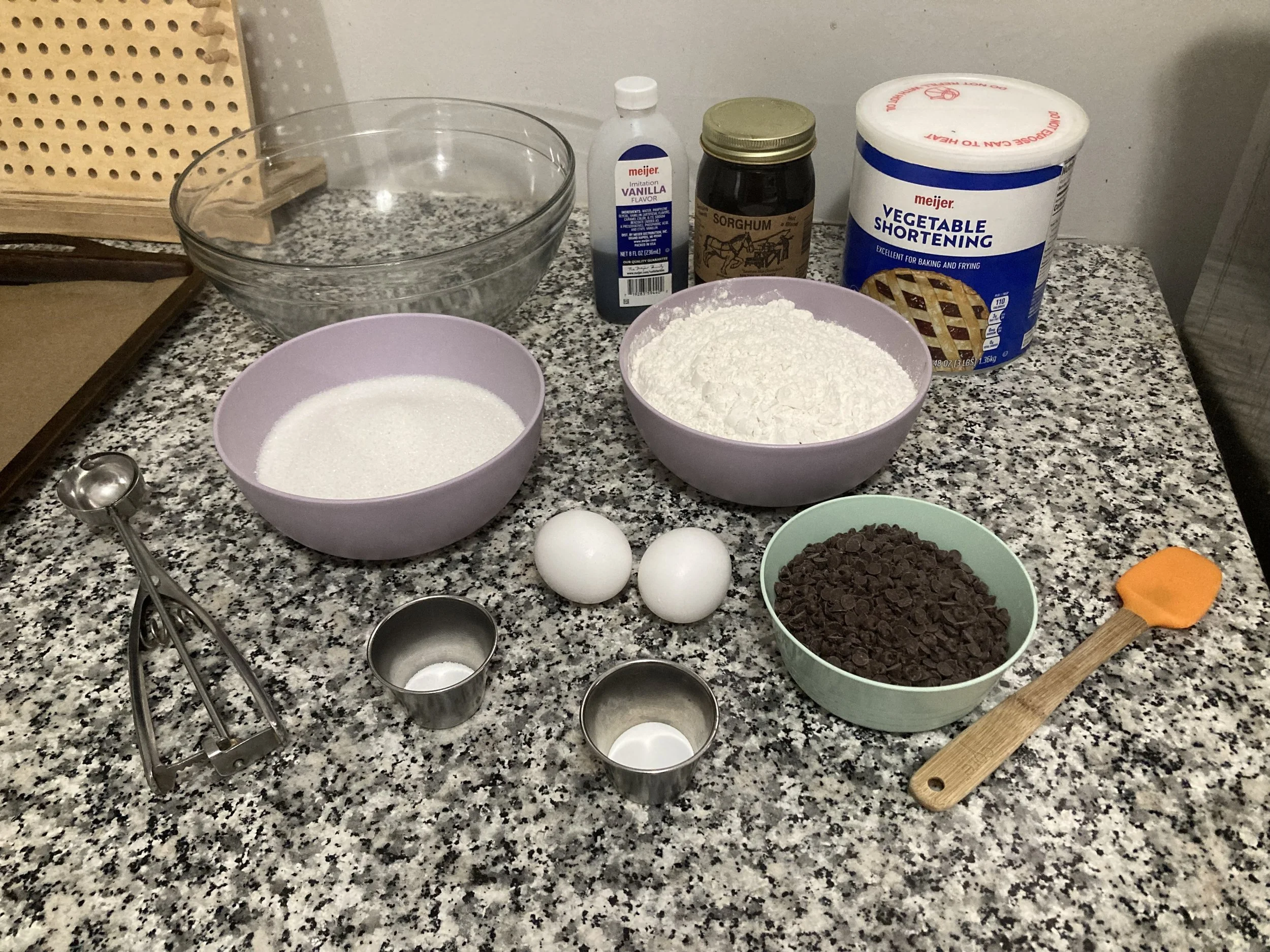 Okay, step one. Make sure you have all of your ingredients. Nothing worse than trying to look up a substitution or have to drive to the store in the middle of baking.